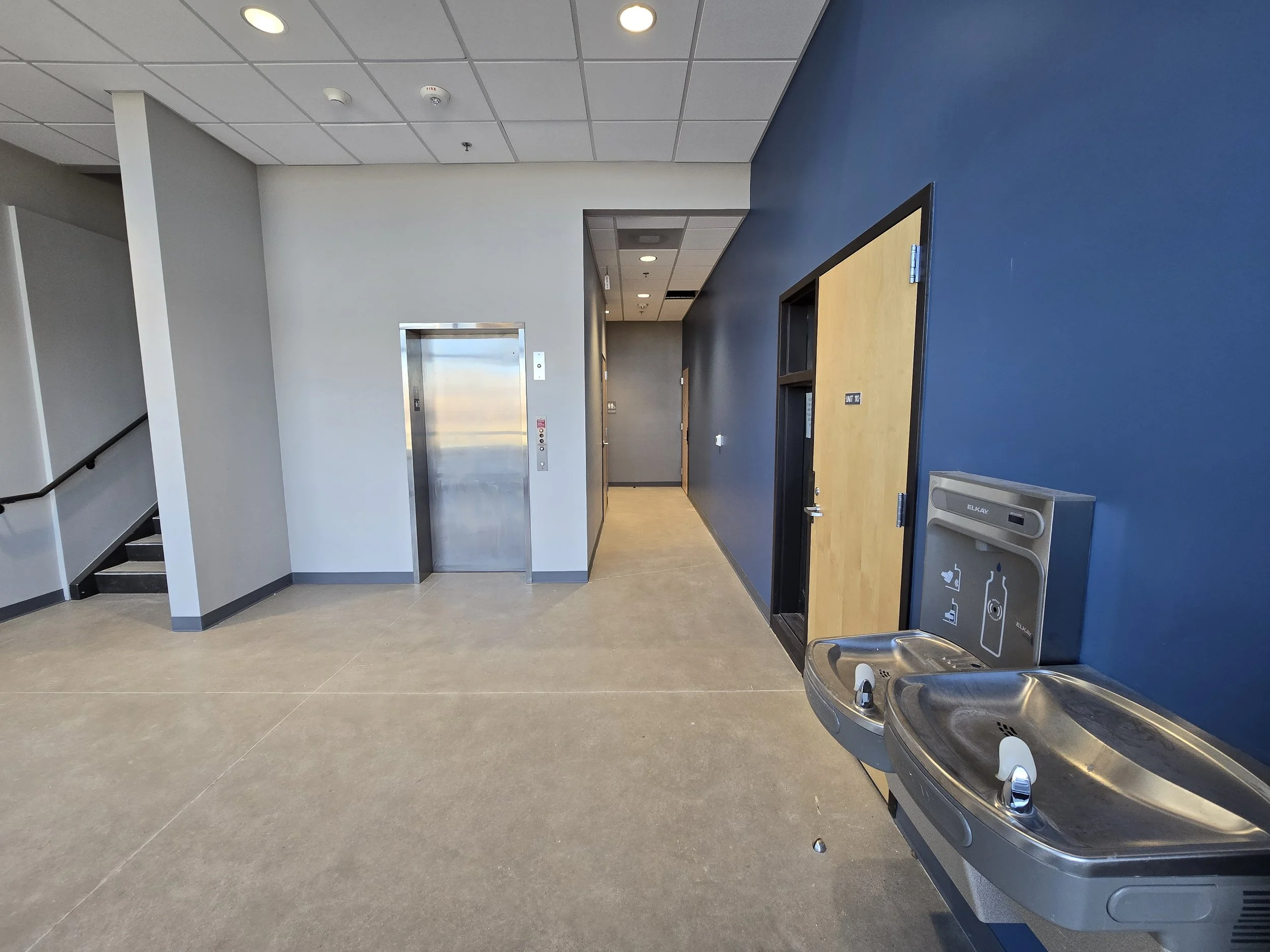 • Finished lobby connection with stairs, elevator, and four restrooms