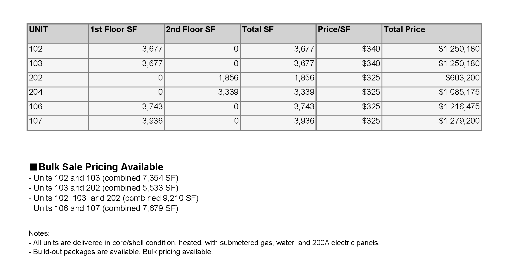 Units are delivered in core & shell condition, allowing each owner to customize interior layout, finishes, office build out, and HVAC to match their operational needs.